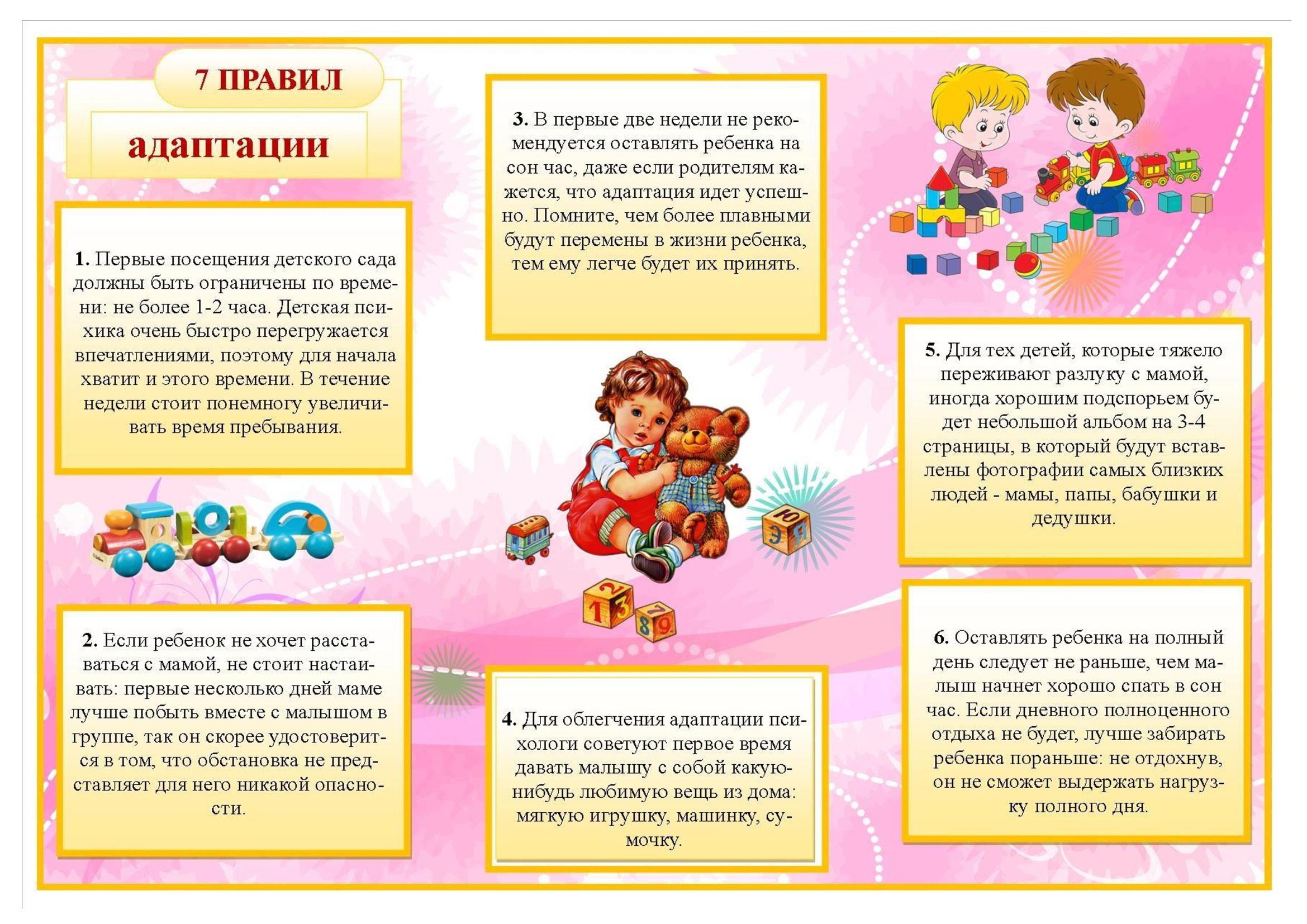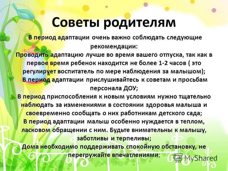 Эти советы помогут пережить ребенку процесс адаптации к условиям детского сада. Если Вам нужна помощь, сотрудники детского сада всегда ждут Вас.
