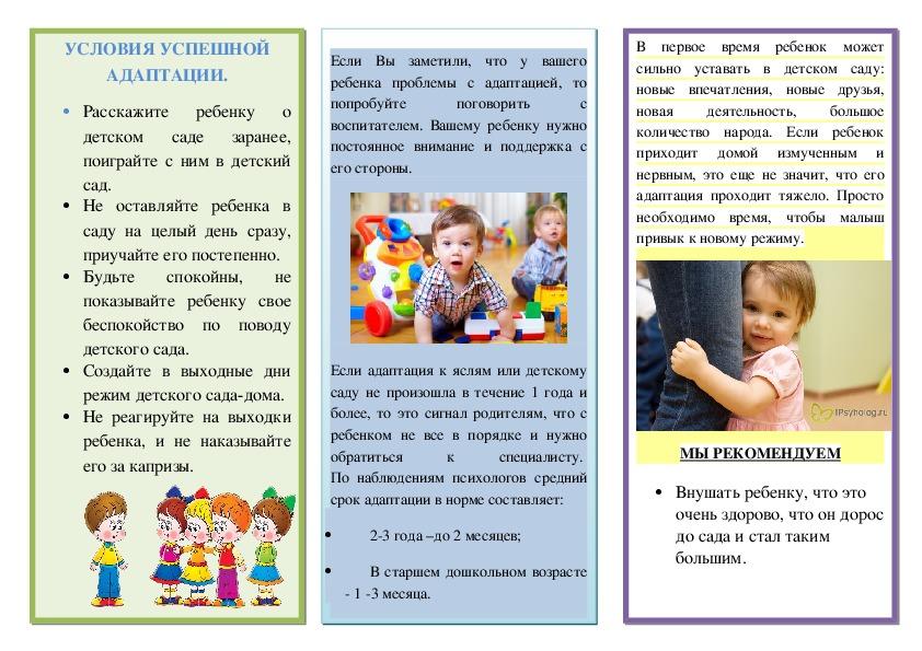 Адаптация ребёнка к новым обстоятельствам жизни — сложный процесс, как для детей, так и для взрослых (родителей, воспитателей). Ребёнок пока ещё не способен выразить свои чувства словами, поэтому появляются значительные перемены в его поведении. Но если отнестись к малышу внимательно и без раздражения, то эти временные отклонения пройдут быстрее и менее болезненно для Вас и ребёнка.